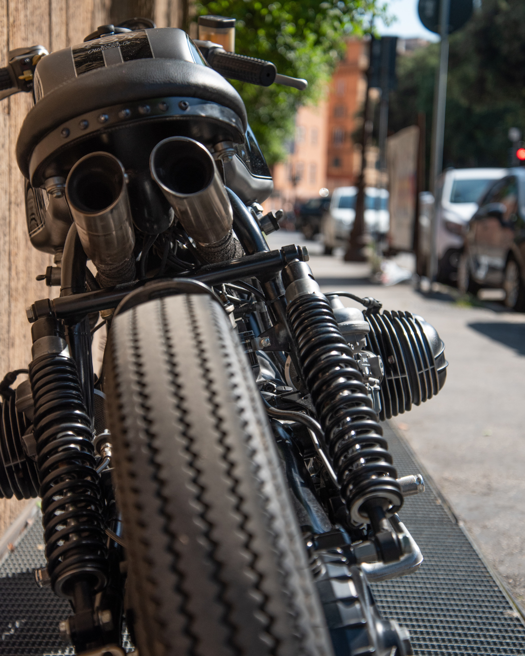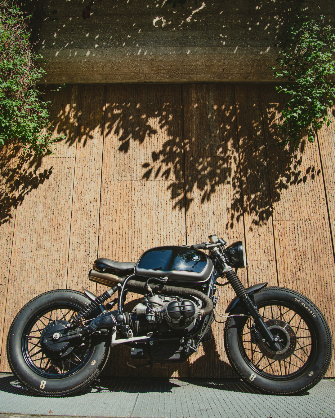 The 1983 BMW R100 RS has been transformed with a custom bobber chassis that combines classic style with modern performance. The handcrafted exhaust under the bike enhances its unique character, while the designed steering plate perfectly matches the original handlebars and braking system, maintaining the authenticity of the bike.