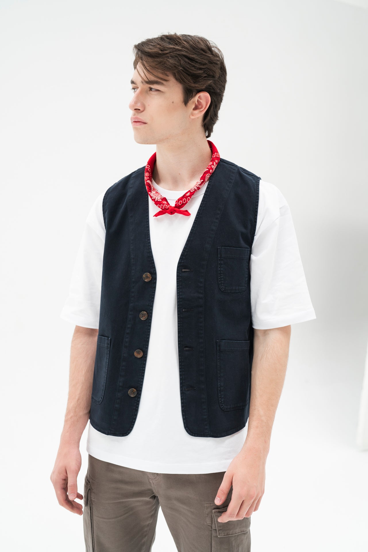 Ideal for bikers who want a touch of style and practicality. Made from 100% cotton twill, the David Vest offers a combination of comfort and durability. With a classic V-neck and button closure, this vest is perfect to complete your look.