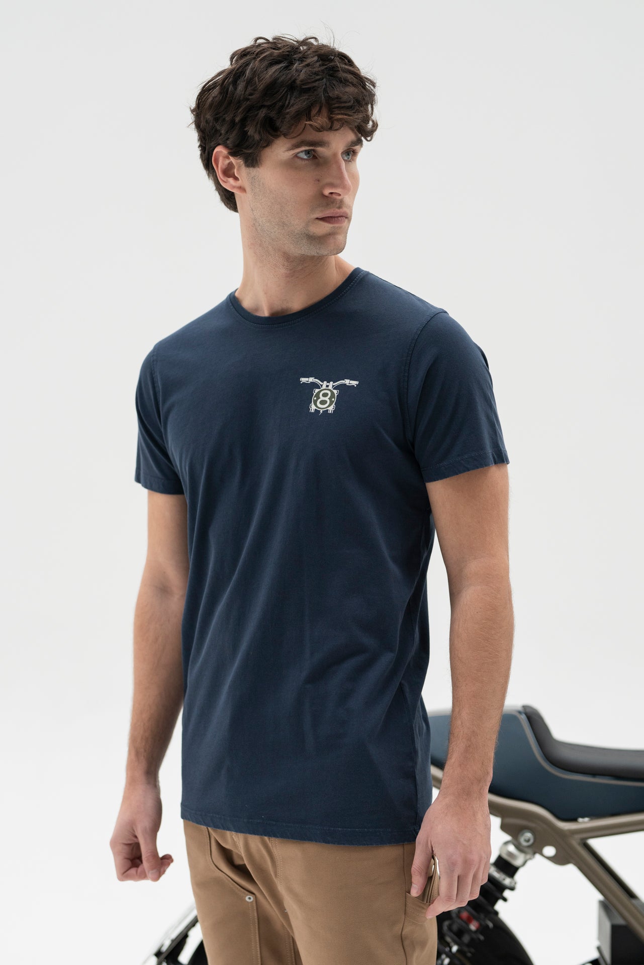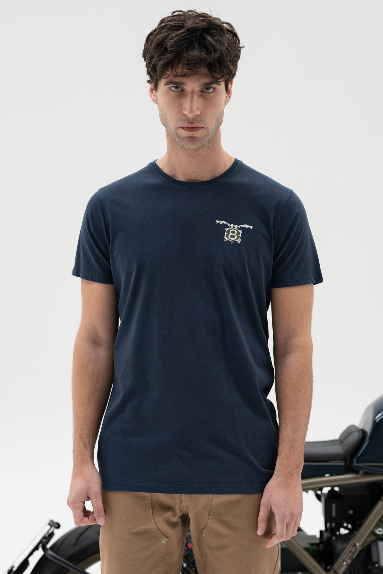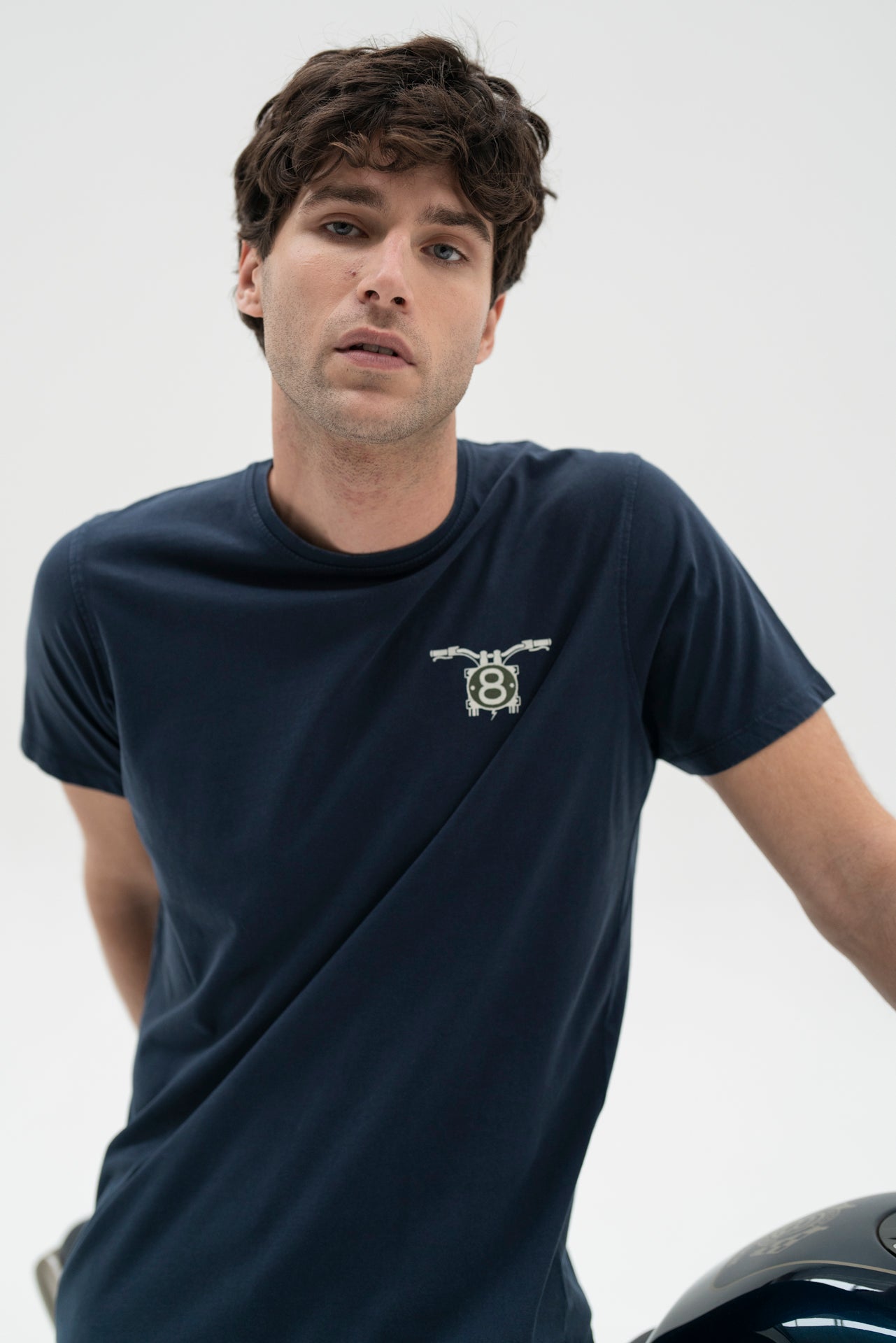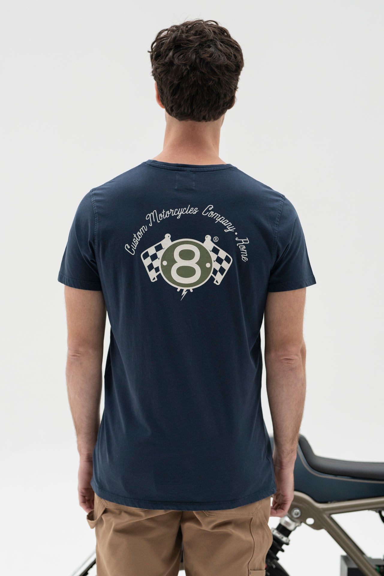 T-shirt made of pure cotton with custom print on chest and back: original design for a unique style. Perfect to accompany you on every adventure.