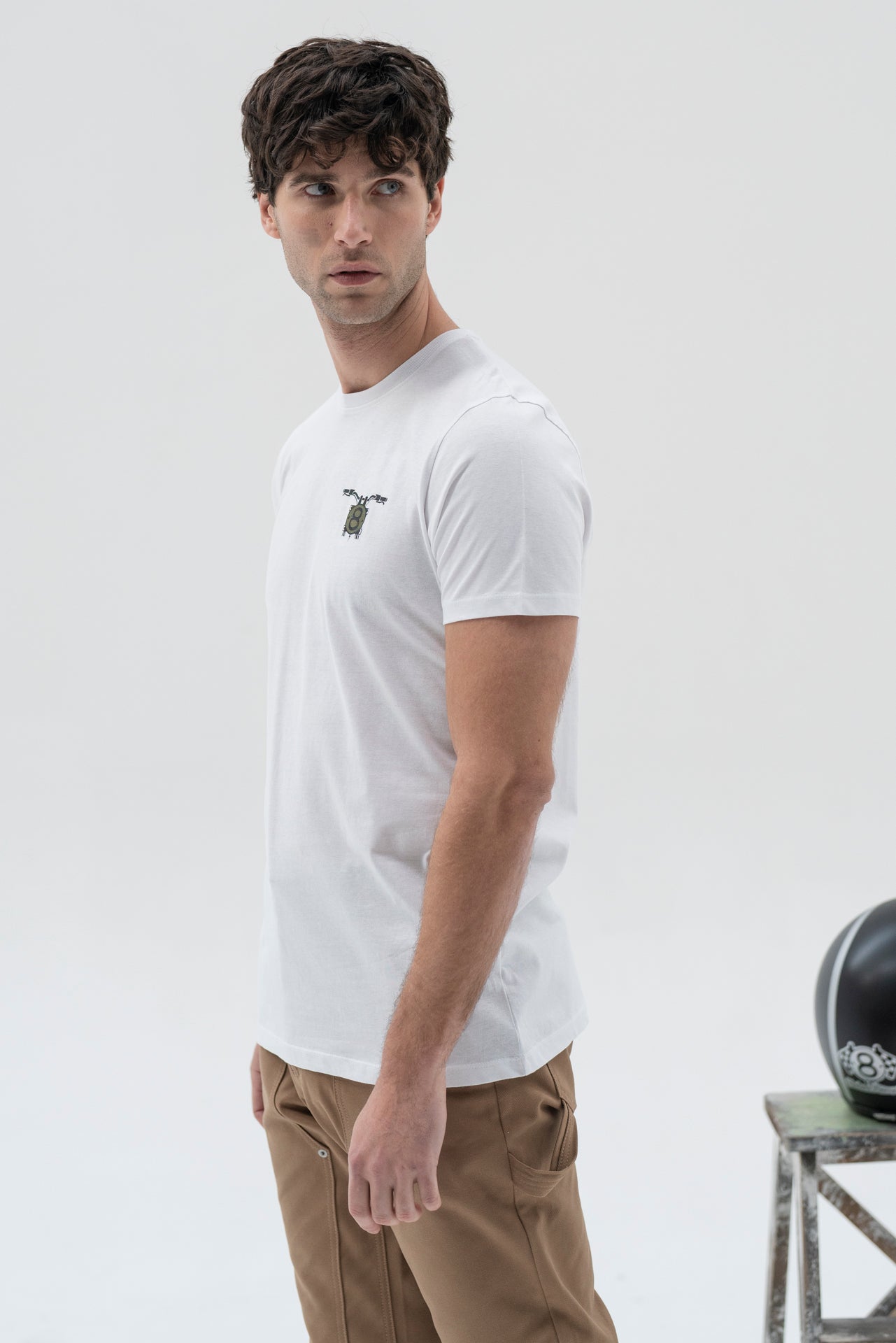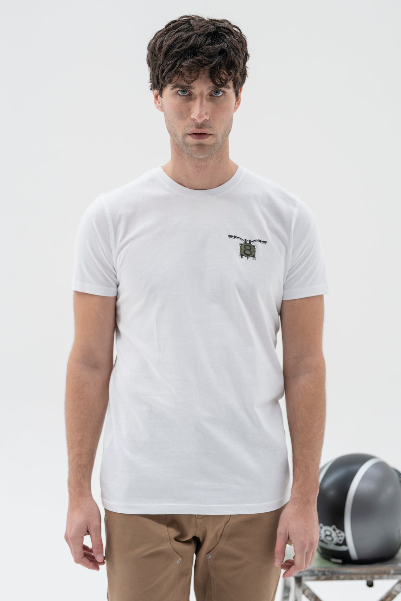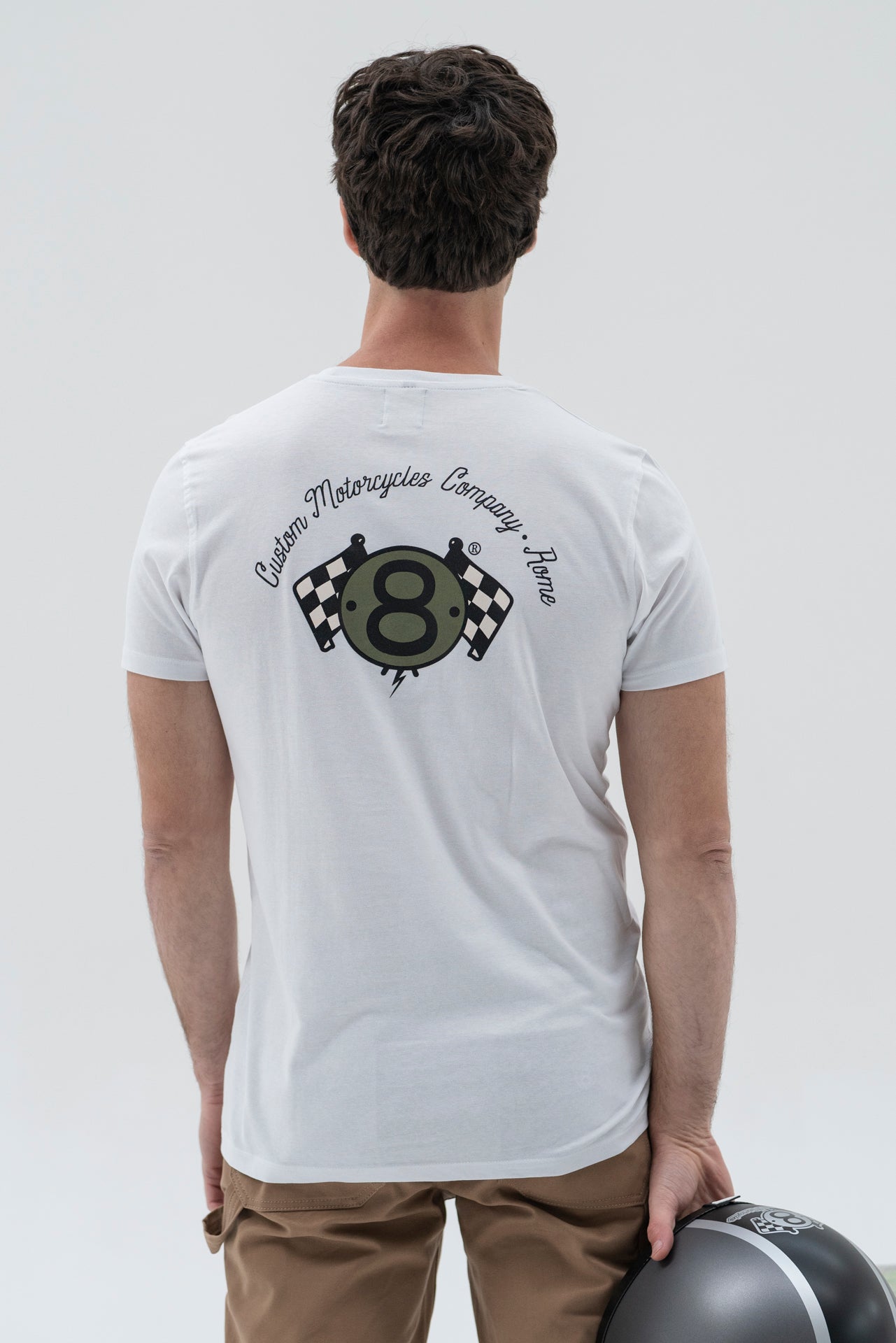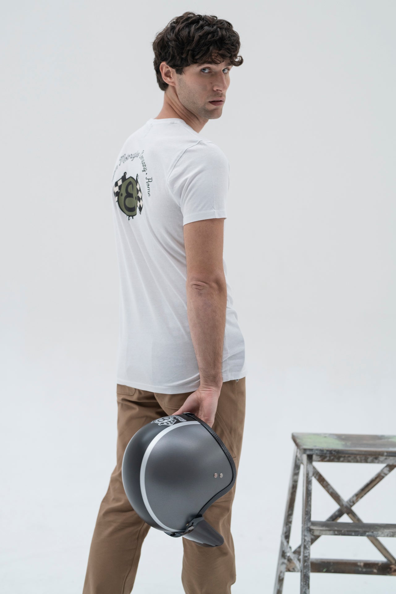 T-shirt made of pure cotton with custom print on chest and back: original design for a unique style. Perfect to accompany you on every adventure.