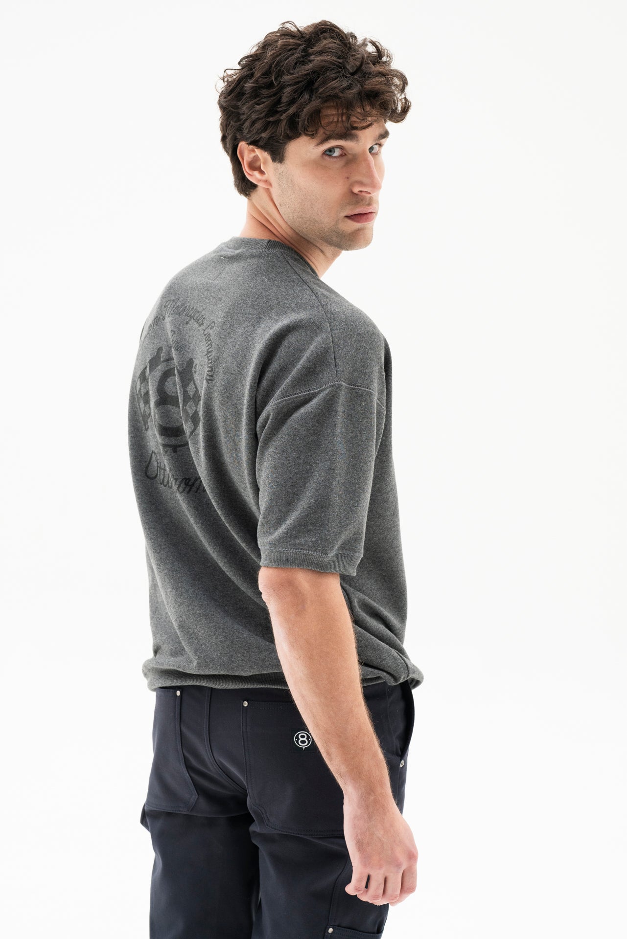 100% cotton short-sleeved crew neck sweatshirt with heart-side print and FLAG back print.