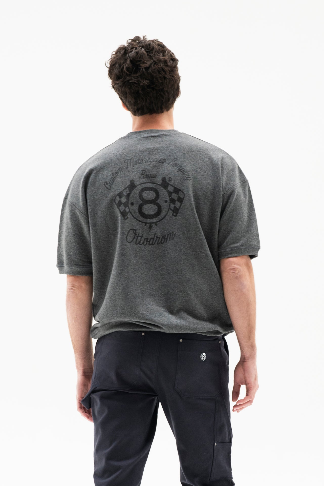 The Flag Fleece short-sleeved crewneck sweatshirt is made of 100% pure cotton, ideal for those seeking comfort and style on every occasion. Featuring a side print on the heart and a large "Flag" print on the back, it adds a distinctive and modern touch to your look.