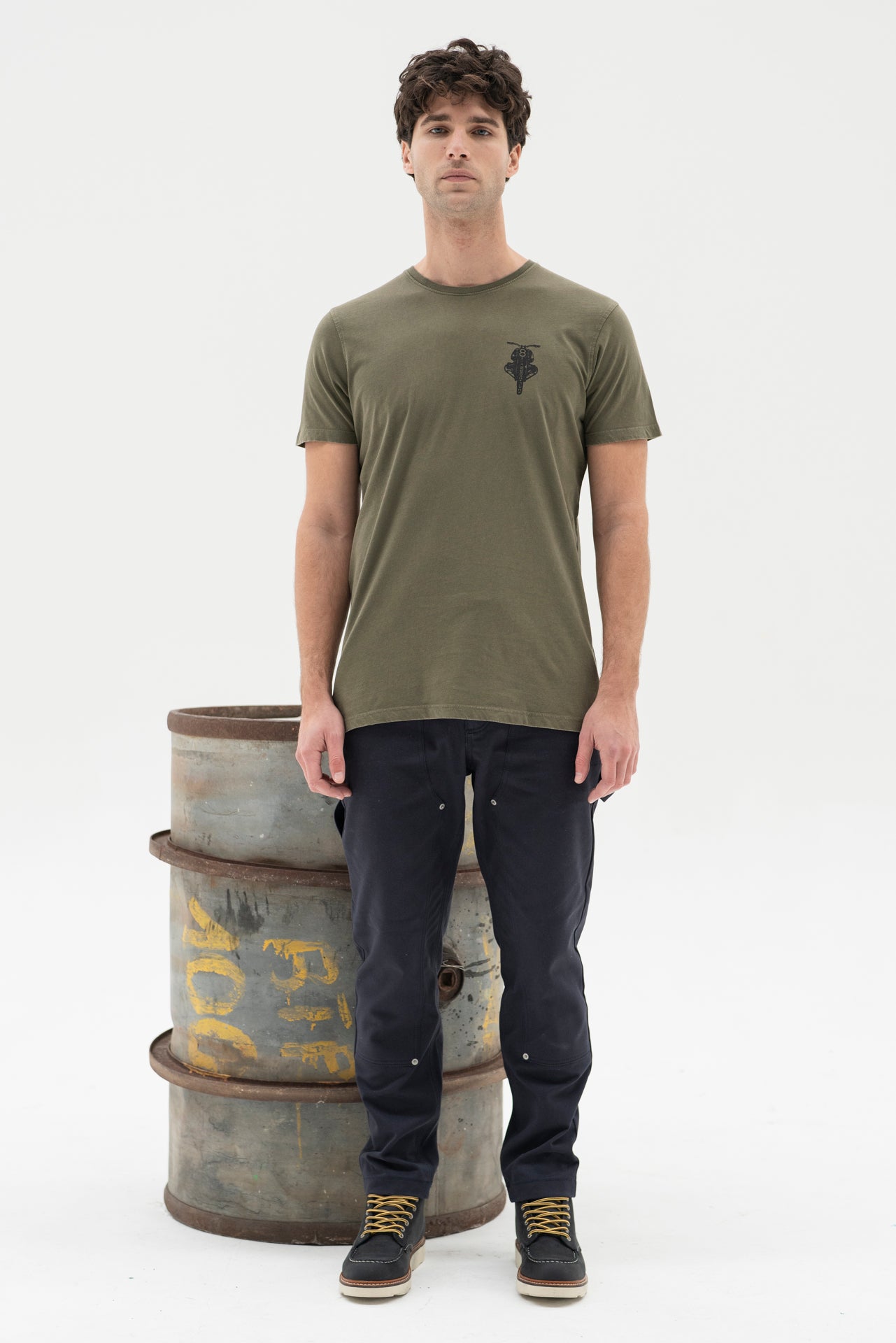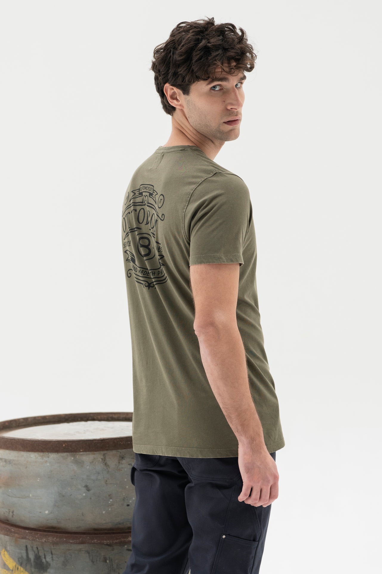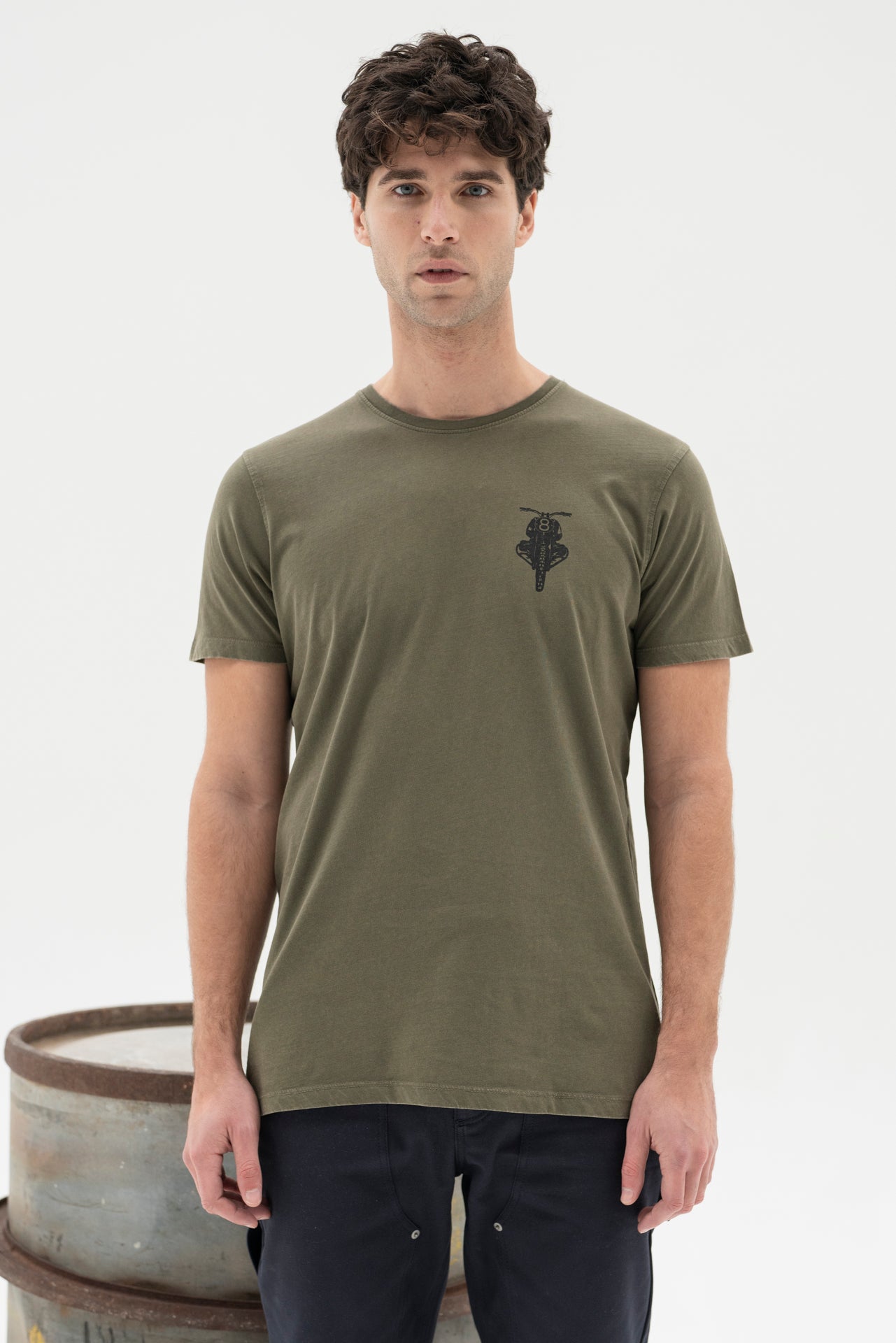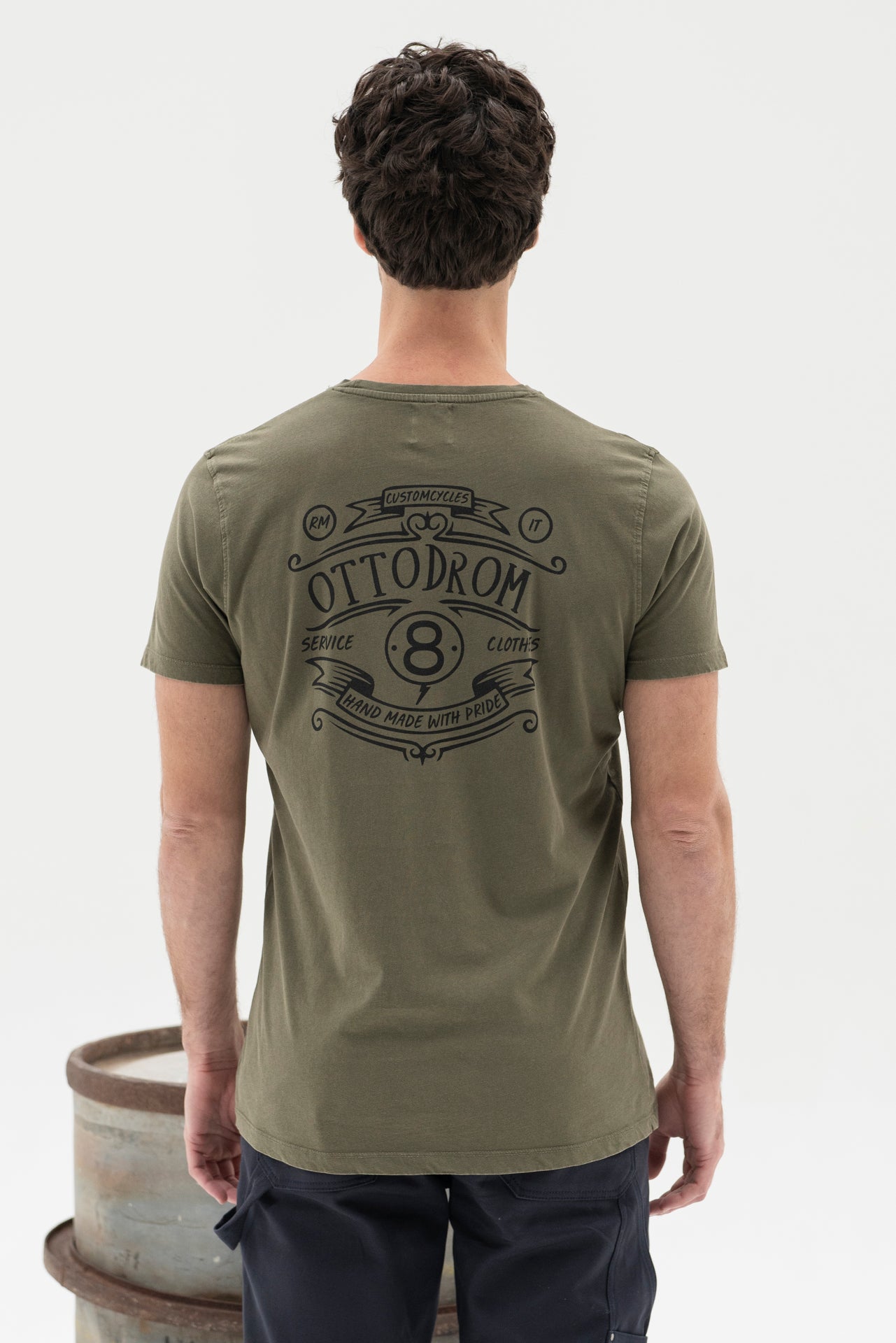 T-shirt made of pure cotton with custom print on chest and back: original design for a unique style. Perfect to accompany you on every adventure.