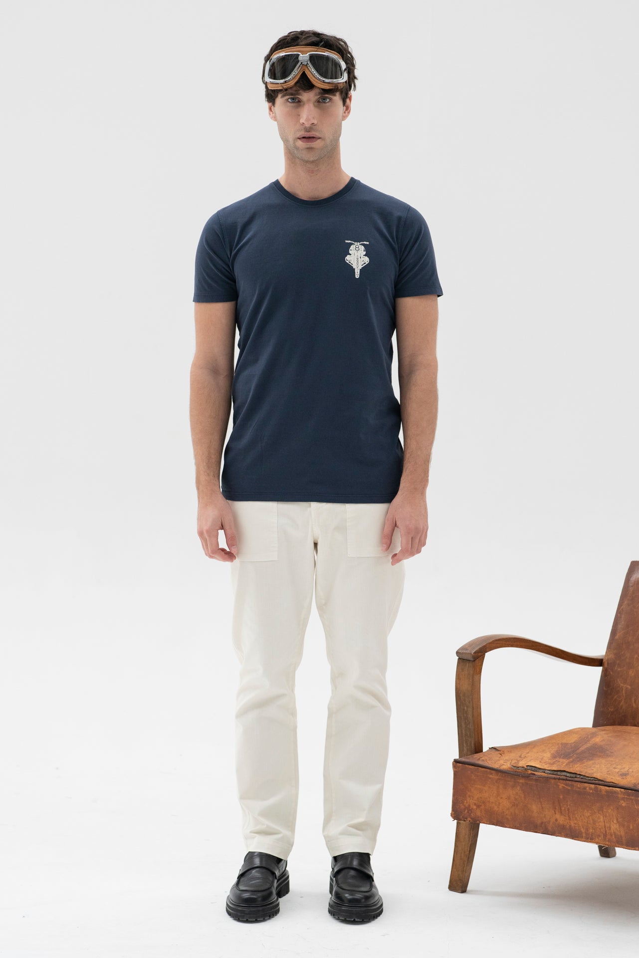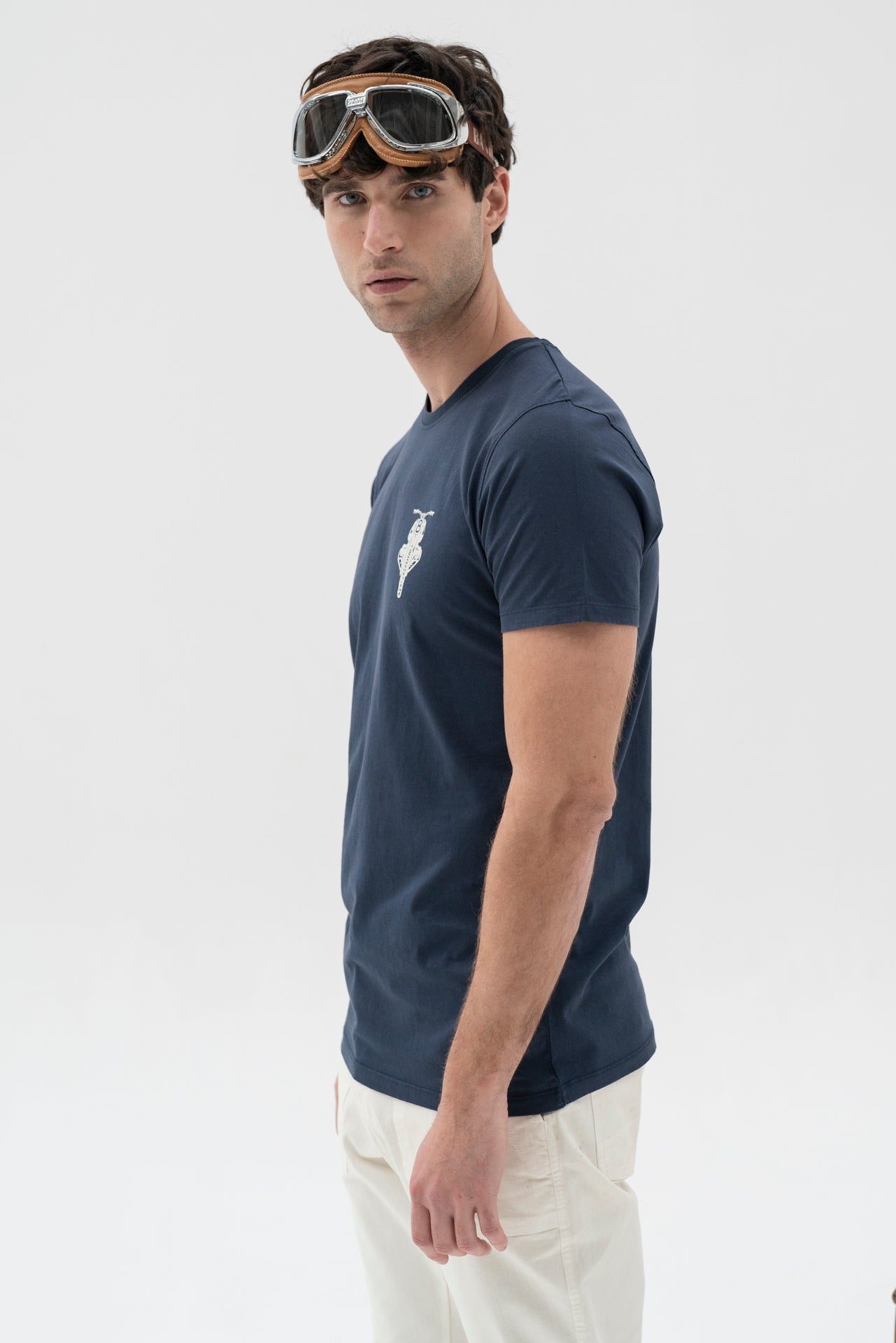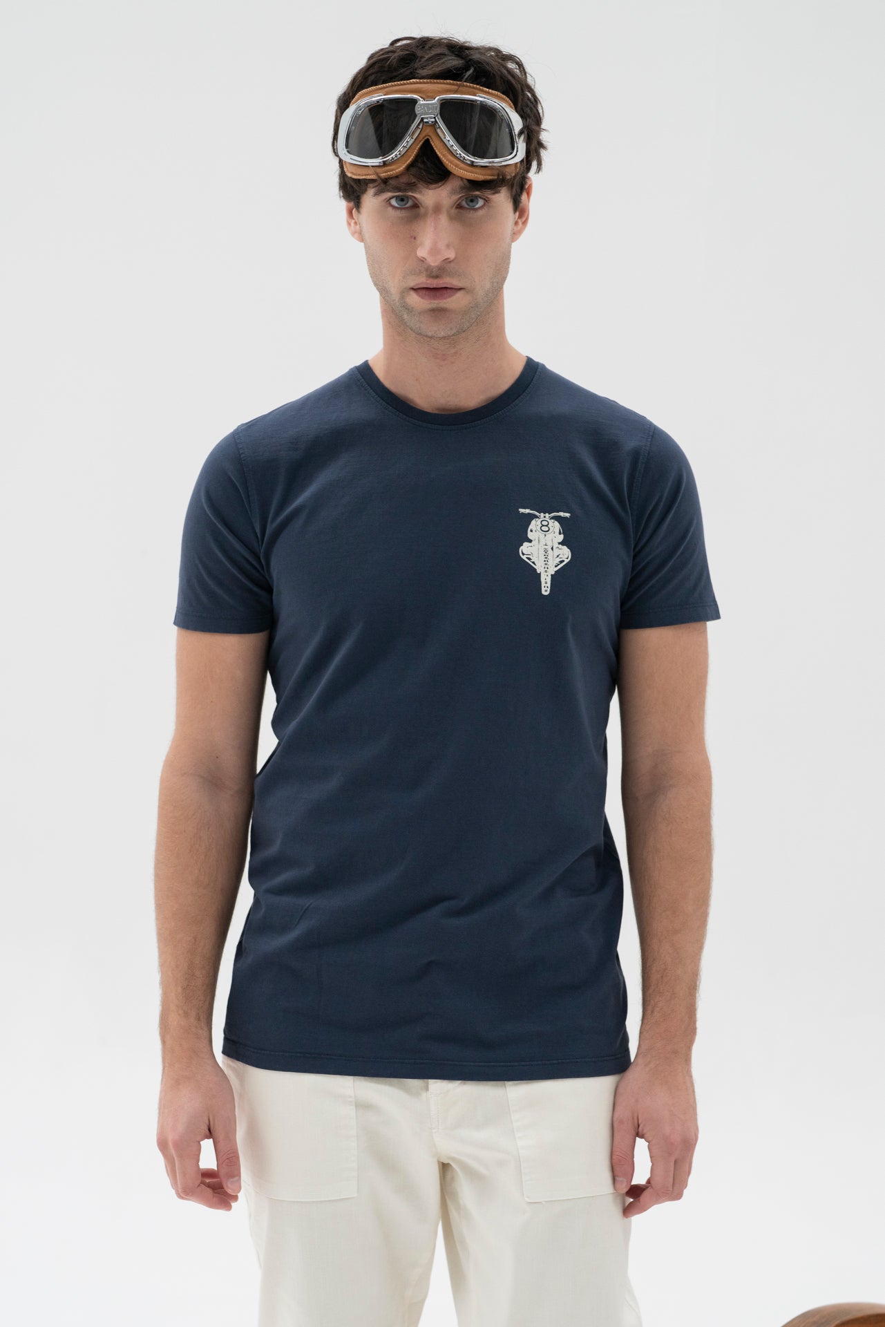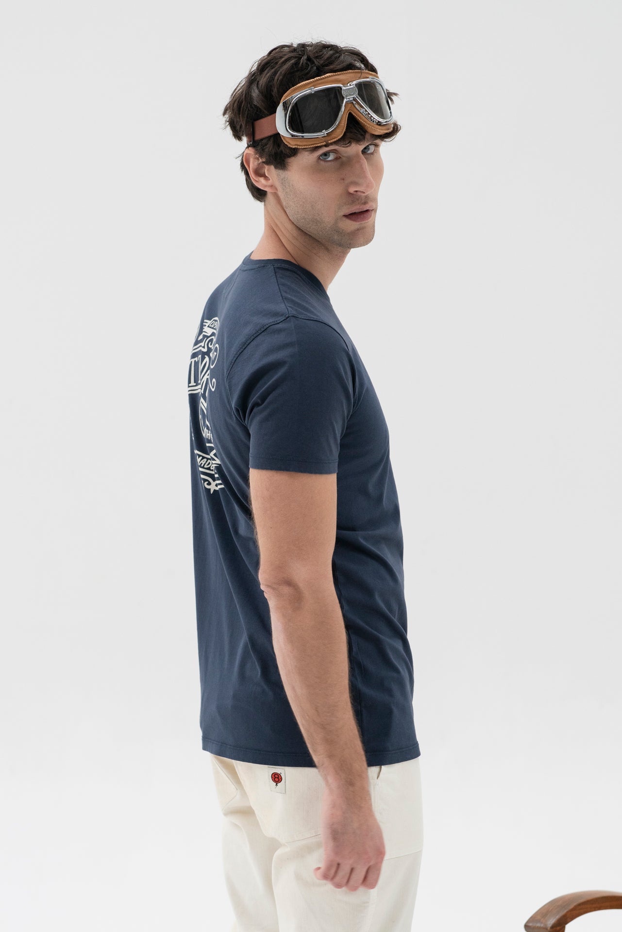 T-shirt made of pure cotton with custom print on chest and back: original design for a unique style. Perfect to accompany you on every adventure.