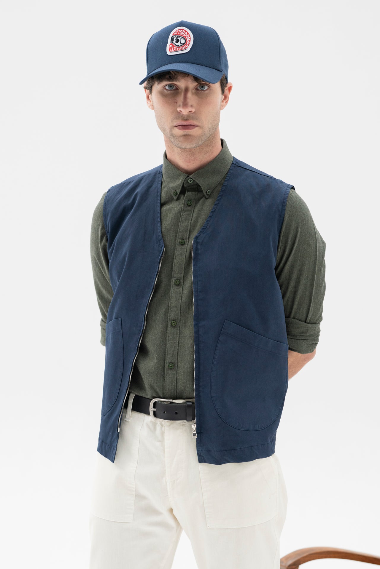 Zip-up vest with patch pockets and internal quilting: perfect for warmth and practicality on cool days. Functional style and comfort for every occasion.