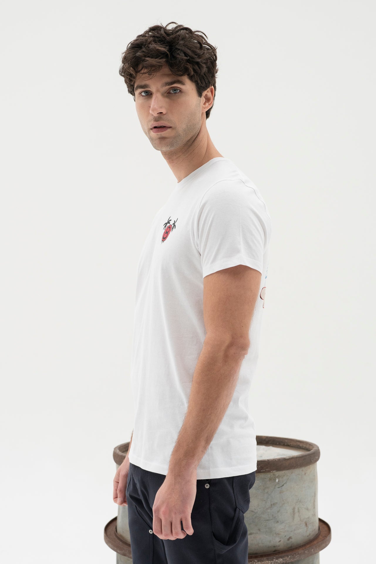T-shirt made of pure cotton with custom print on chest and back: original design for a unique style. Perfect to accompany you on every adventure.