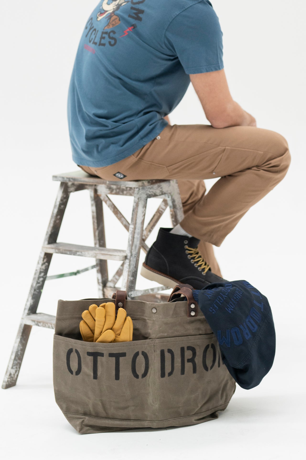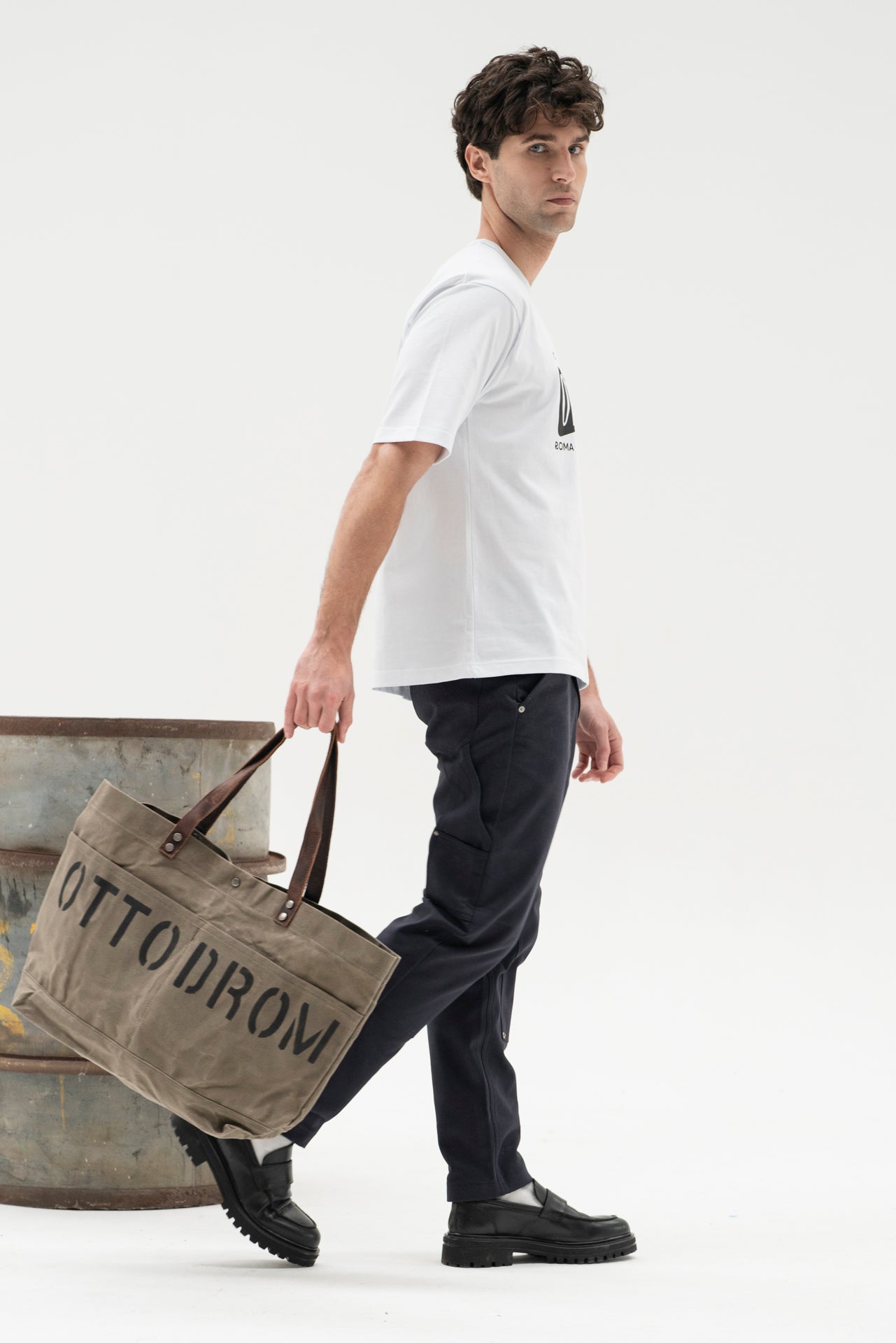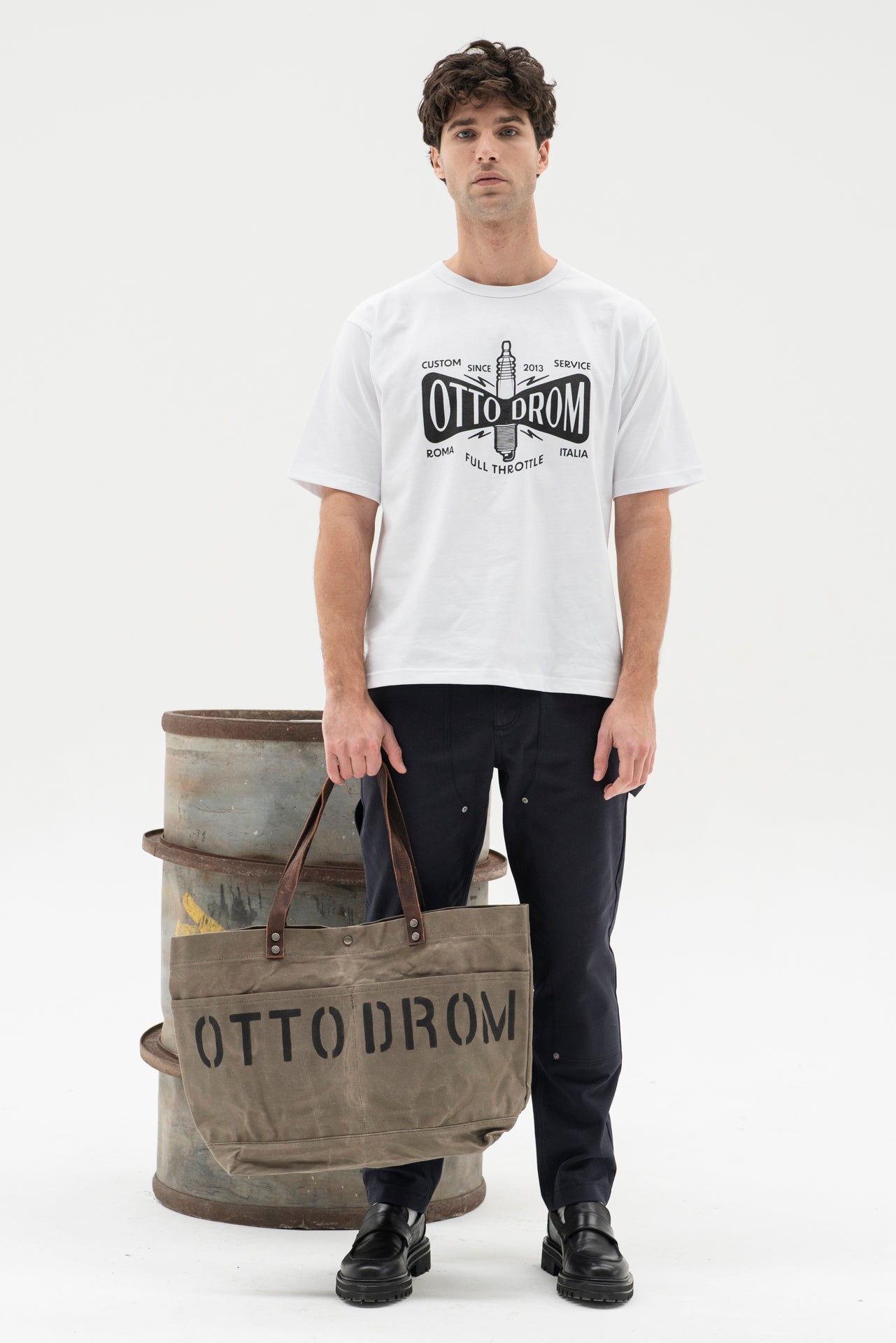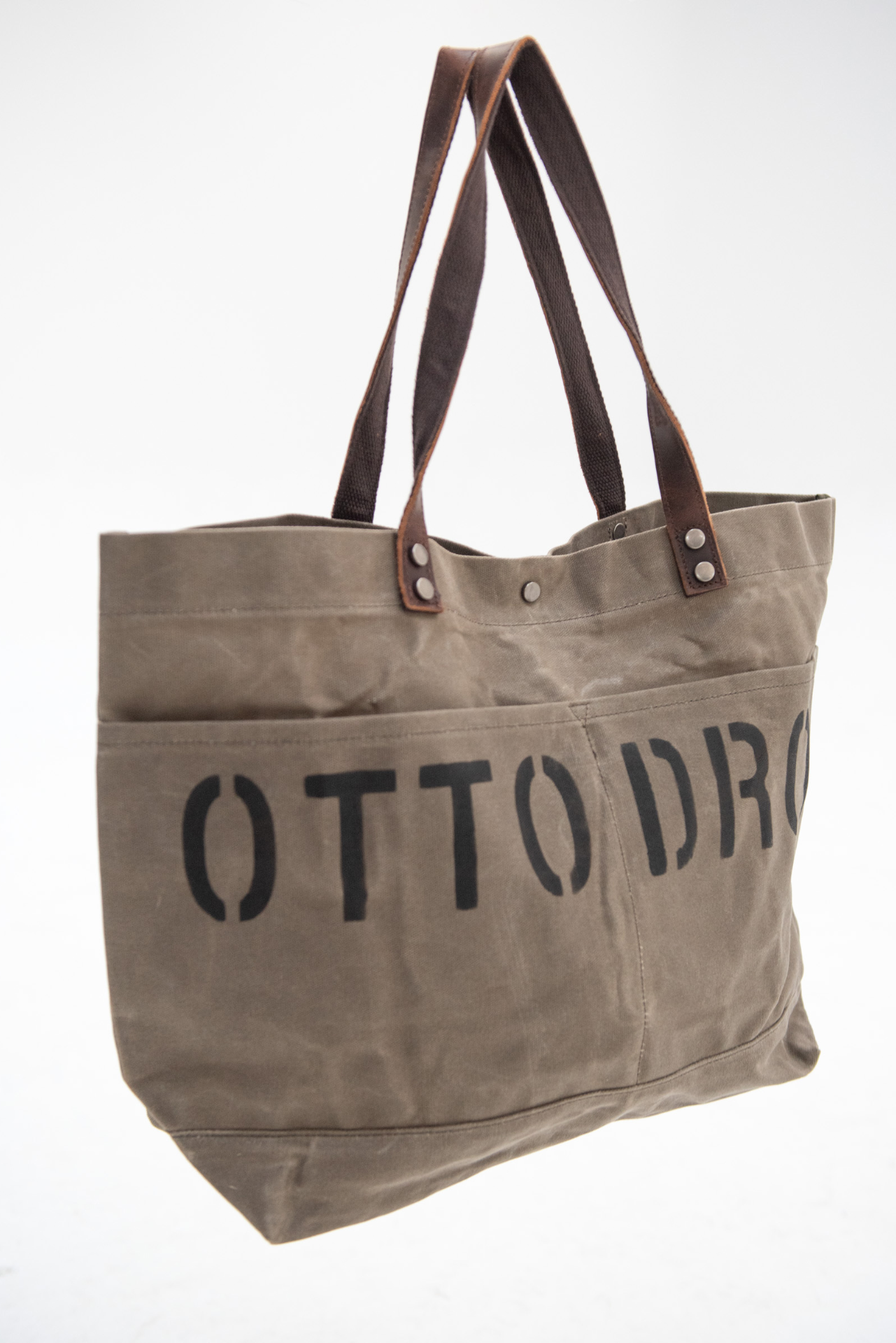 Daily Bag in coated canvas with leather details and engraved Ottodrom logo.