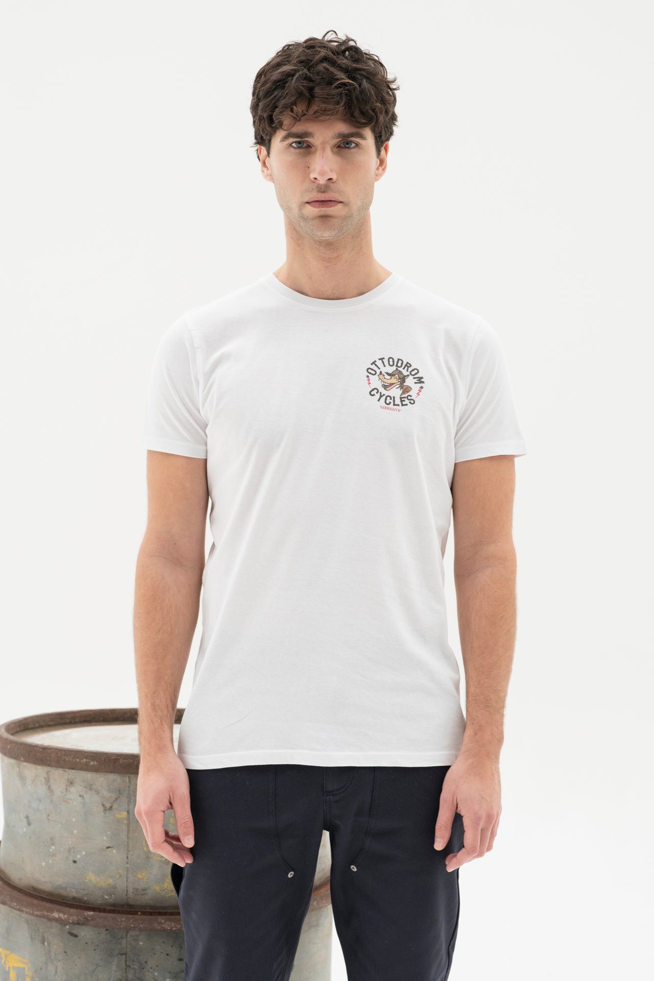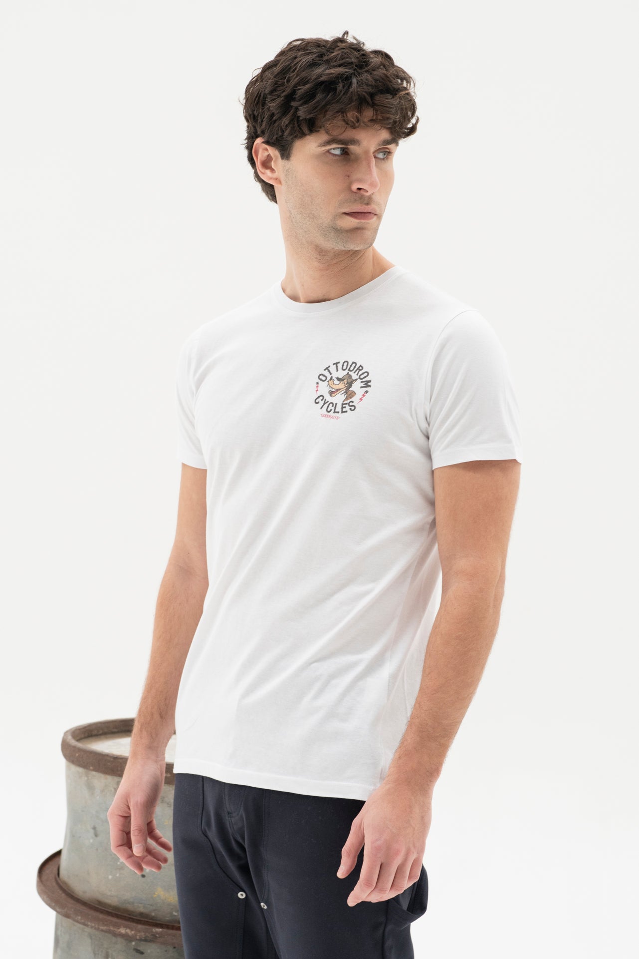 T-shirt made of pure cotton with custom print on chest and back: original design for a unique style. Perfect to accompany you on every adventure.